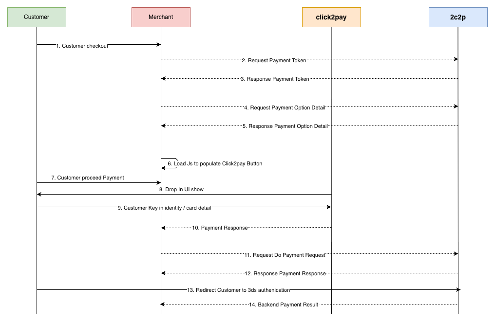 - Customer key in identity & card detail on click2pay drop-in UI and submit payment